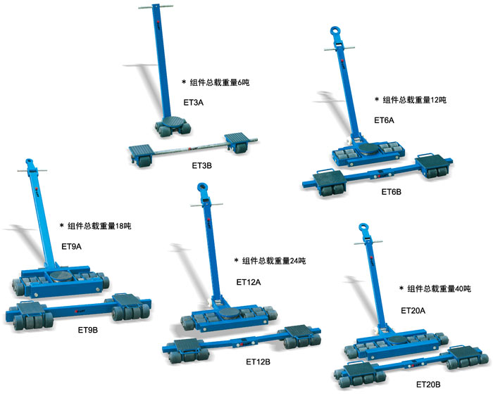 ● 瑞典原裝進口高強度重載輪子,移動平穩,堅固耐用 ● A型滑動輪的支撐面可轉向,B型滑動輪的支撐面為固定平板,B型滑動輪的聯接桿長度可調節 ● A和B型配合使用