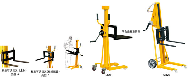 ● 堅固,輕巧,鋼結構 ● 移動性強,極易操作 ● 絞纜舉升系統都是由纜繩組成 ● 符合歐洲EN1757-1標準 ● 手搖設計,節省空間 ● 可調貨叉
