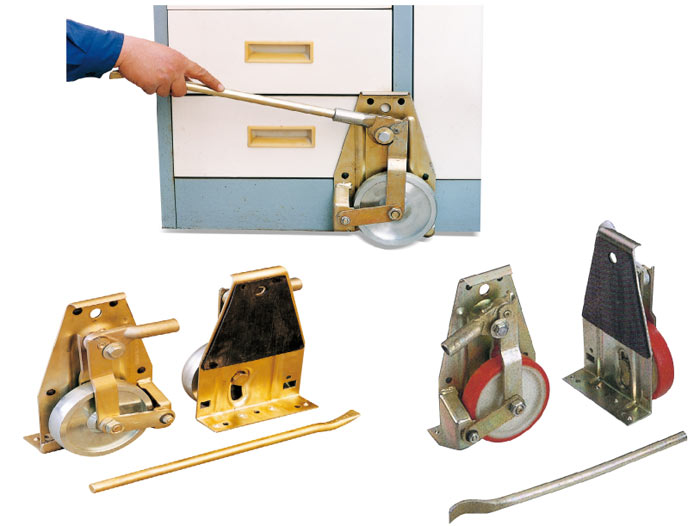 ● 簡易型設計 ● 首先用手柄桿把物體翹起,并把千斤頂一側放在物體下方.然后按圖片把千斤頂放在物體每一側. ● 成對銷售。包括1個舉升手柄和2個機械千斤頂