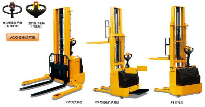 ● 采用進口液壓泵站,提升貨物平穩有力 ● 進口驅動輪.配置可靠的盤式剎車系統.動力強勁.性能穩定 ● 進口的電控系統反應靈敏,操作自如 ● 配置大容量的牽引電池,充電方便快捷,電量持久,帶電量顯示表,低電壓報警燈 ● 特殊軋制工藝制造的“C”型鋼門架.確保更長久和更安全的使用 ● 帶有低電壓保護功能.在蓄電池電壓短時間低于規定電壓時.低電壓保護功能可保證電池及電器元件的安全。 ● 符合歐洲EN1757-1:2001,EN1727標準